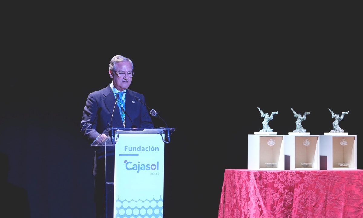 El Teatro de la Fundación Cajasol se ha vestido de gala para acoger la tercera edición de la entrega de los Premios de la Real Academia de San Dionisio de Ciencias, Artes y Letras en la tarde del jueves 16 de octubre de 2025. La cita ya se ha consolidado como un referente en el reconocimiento a la excelencia cultural y científica de Jerez. En una emotiva ceremonia, conducida por Enrique Víctor de Mora, se ha puesto en valor la trayectoria y la aportación de la investigadora enológica Belén Puertas García (Premio a las Ciencias), la artista plástica Ana Barriga (Premio a las Artes) y el poeta y editor José Mateos (Premio a las Letras).