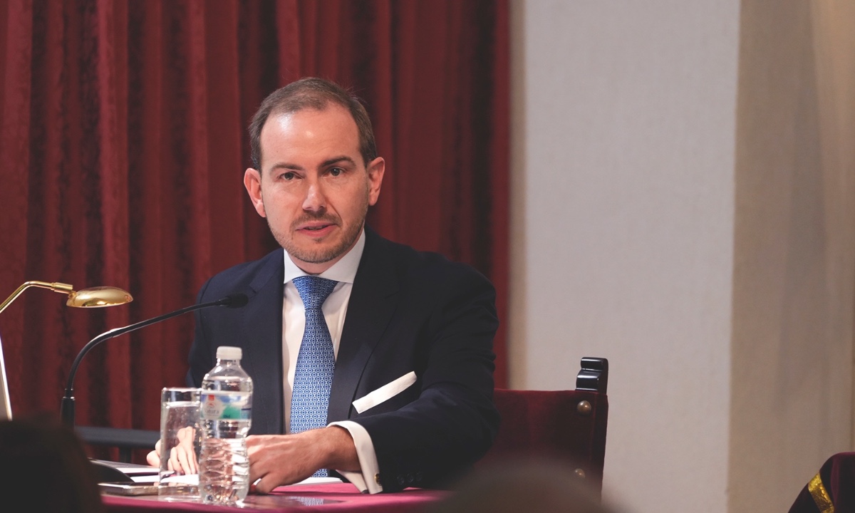 El vicepresidente de Letras aprovechó además su intervención para realizar una laudatio o elogio del recipiendario, que, según precisó, «tratándose del doctor Jiménez López de Eguileta, se convierte más bien en una descriptio, una descripción fiel de su vida y su obra». Recordó sus estudios en la Universidad de Cádiz y la Universidad de Sevilla, su doctorado cum laude en 2020 con una tesis sobre el notariado en Sanlúcar de Barrameda durante la Baja Edad Media, así como su intensa y prolífica trayectoria investigadora.