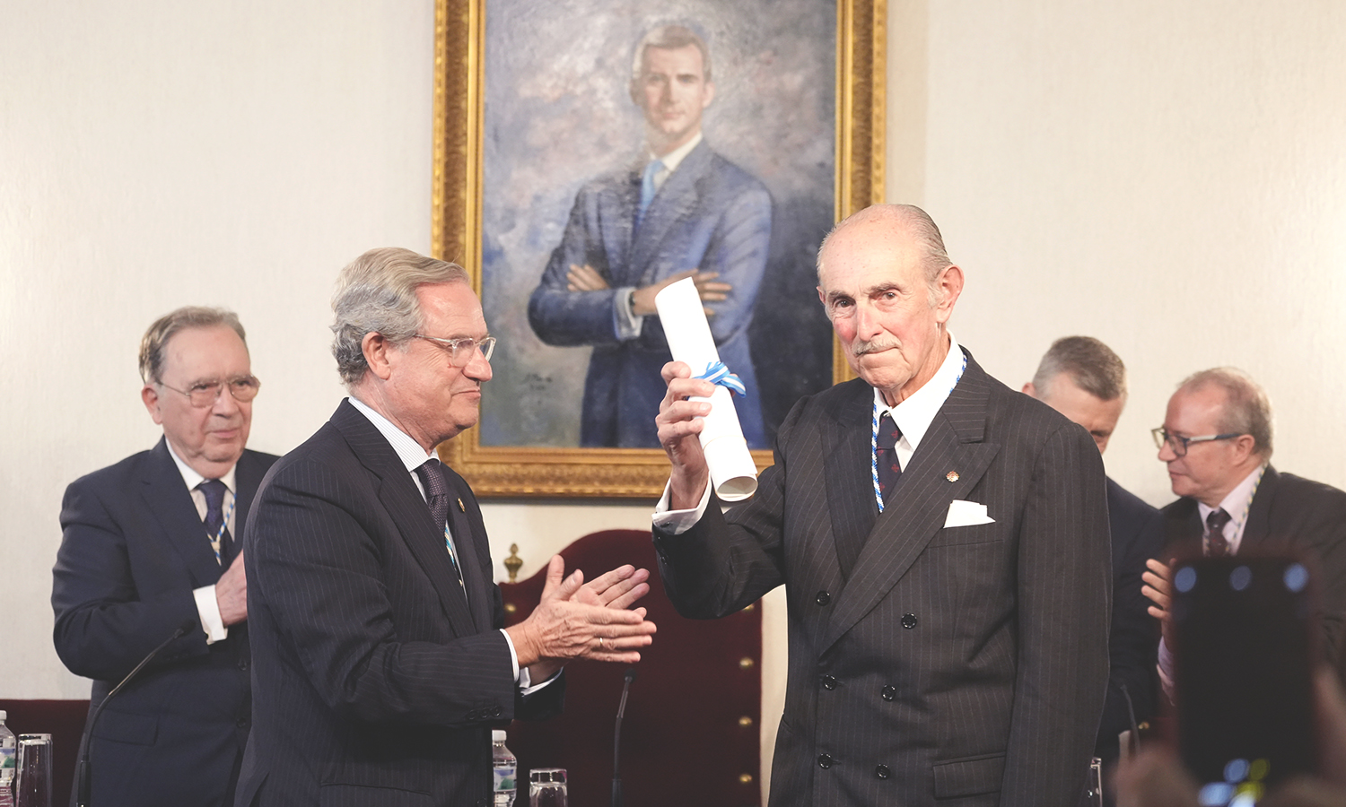 Concluyó su intervención evocando el Caballo de Oro de la Feria de Jerez 2019 como «síntesis del reconocimiento a una vida dedicada a la tradición, la cultura y el servicio», y dio la bienvenida a Felipe Morenés y Giles «como un académico cuya nobleza de espíritu engrandece la historia de esta Real Academia San Dionisio».