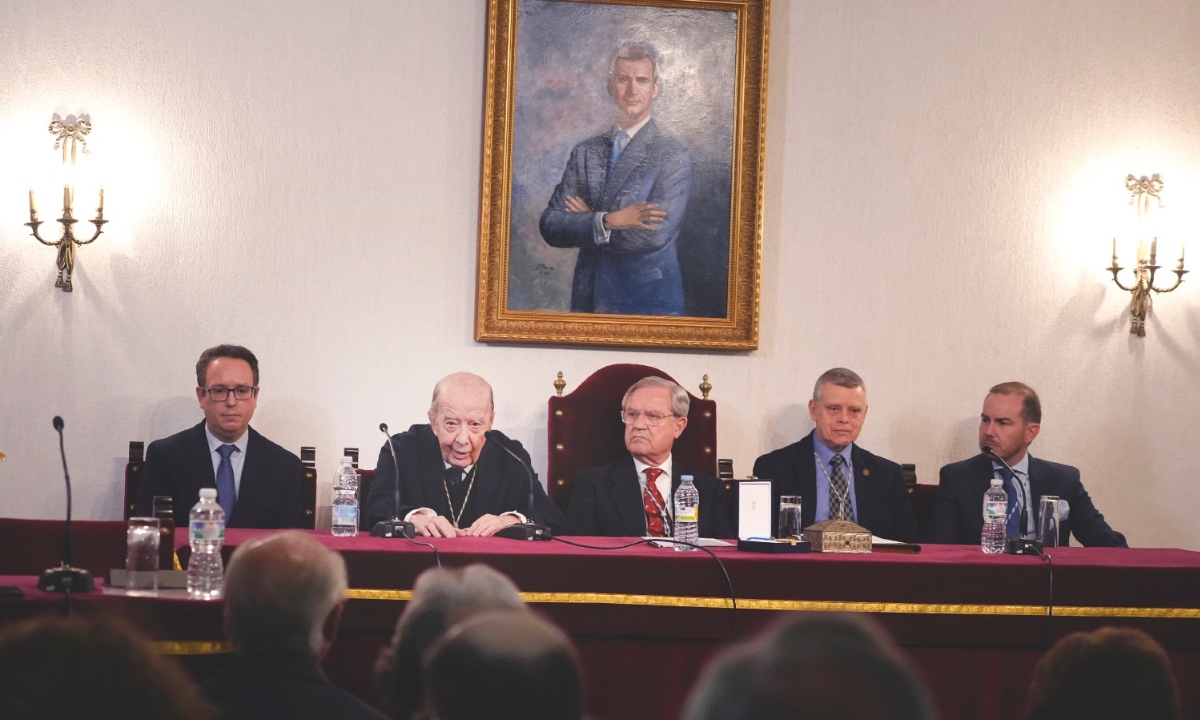 El presidente de honor quiso también expresar públicamente su reconocimiento al académico de número Francisco Antonio García Romero, al que definió como uno de los grandes valedores de la continuidad del ciclo, y alentó a los más jóvenes a mantener vivo este legado. «Os dejo con la gente joven», concluyó, antes de ceder la palabra al presentador del conferenciante, el también académico de número doctor Javier E. Jiménez López de Eguileta, a quien calificó con afectuosa complicidad como «muy barroco».