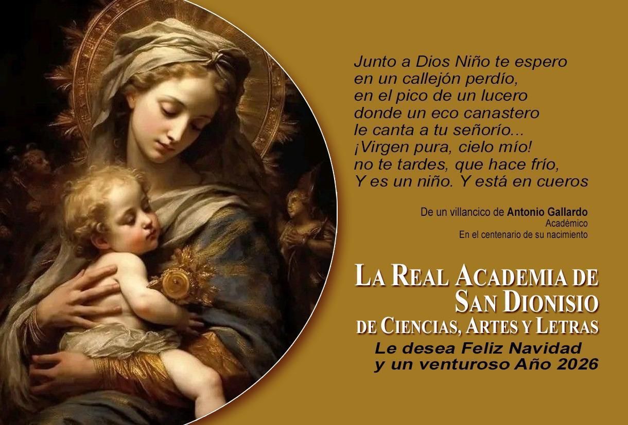 El Presidente y la Junta de Gobierno de la Real Academia de San Dionisio de Ciencias, Artes y Letras de Jerez de la Frontera les desea una Feliz Navidad y un próspero año nuevo.